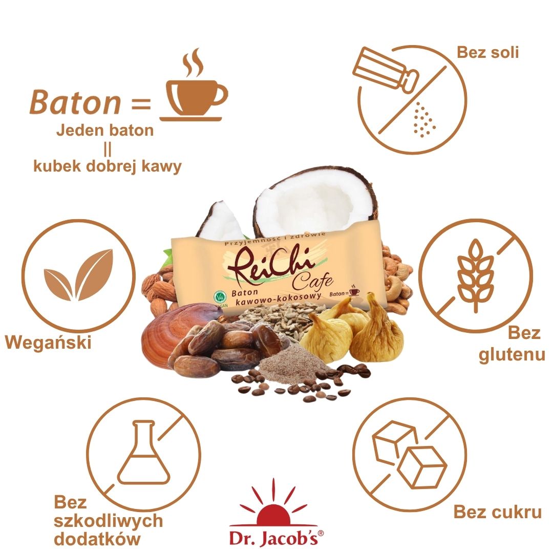 Baton ReiChi Cafe to świetny wybór zawsze, kiedy potrzebujesz miłego pobudzenia, energii, koncentracji lub chwili przyjemności:
